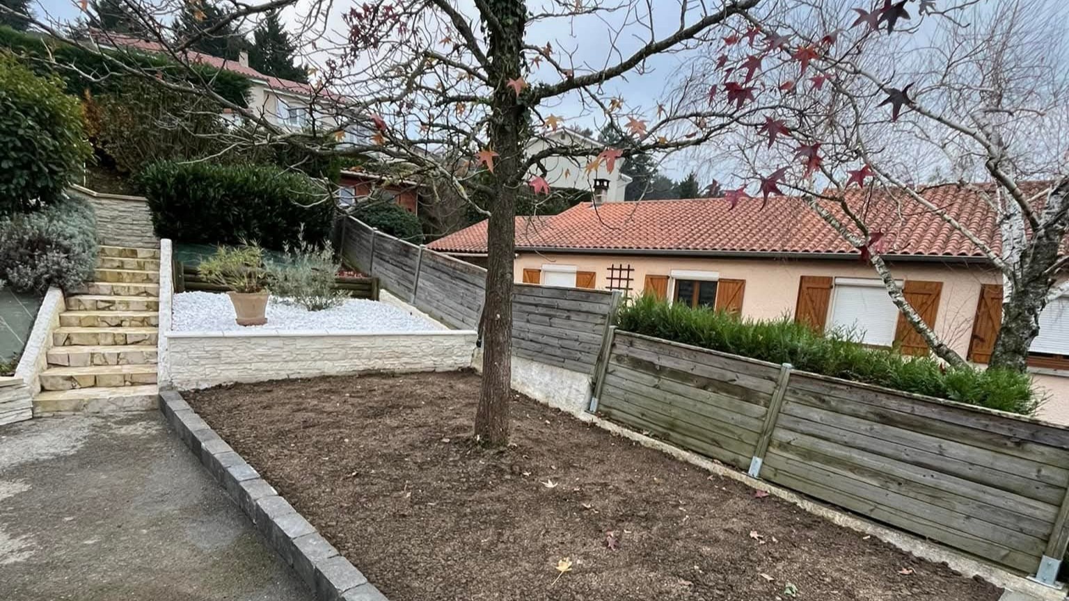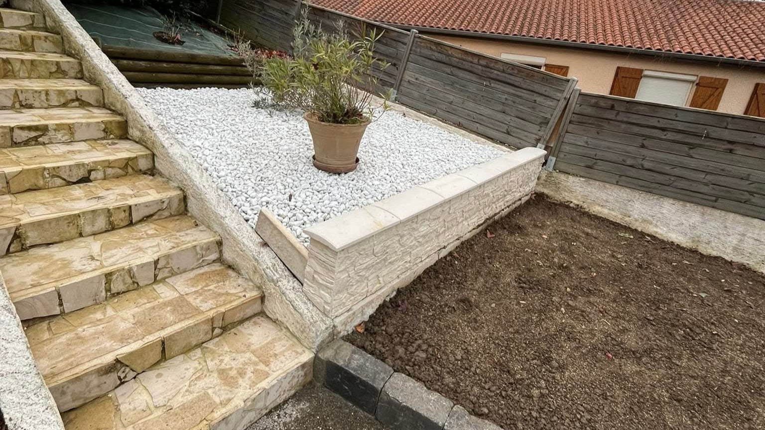 Nous vous accompagnons dans la création et l’entretien de vos extérieurs, avec des solutions adaptées à chaque terrain. Terrasses, allées, massifs, escaliers ou clôtures : découvrez l’ensemble de nos prestations.