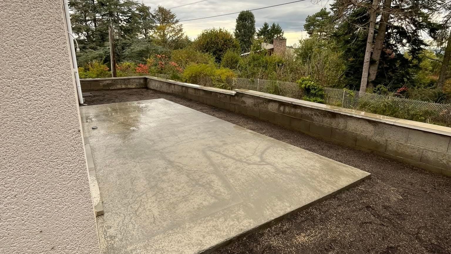Réalisation de dallages béton solides et parfaitement nivelés pour vos allées, terrasses, zones de stationnement ou espaces techniques.