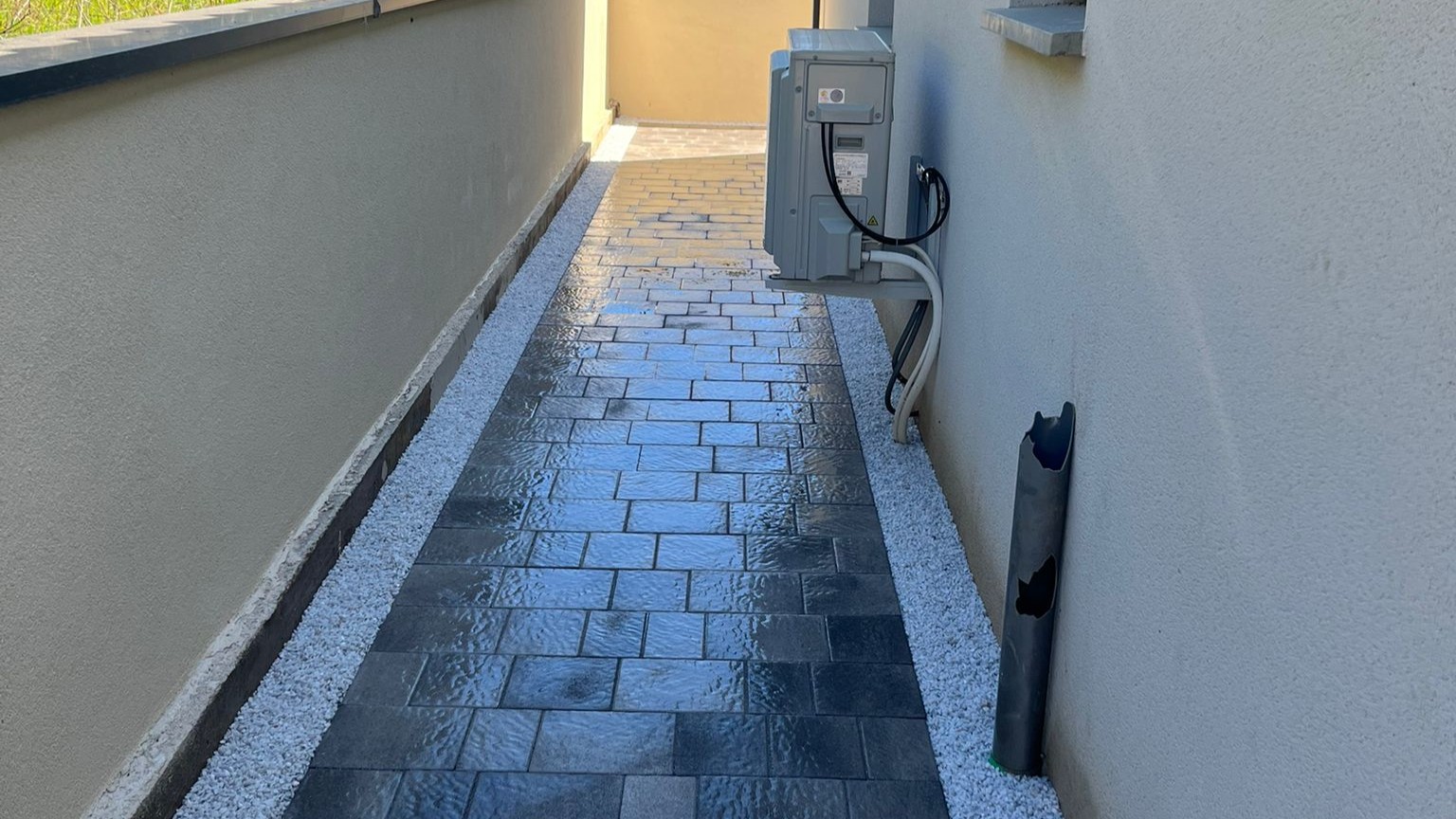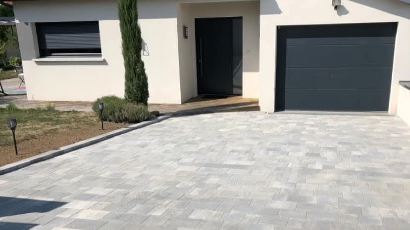 Réalisation d’allées carrossables (ou non) solides et soignées, en dalles, pavés ou enrobé.