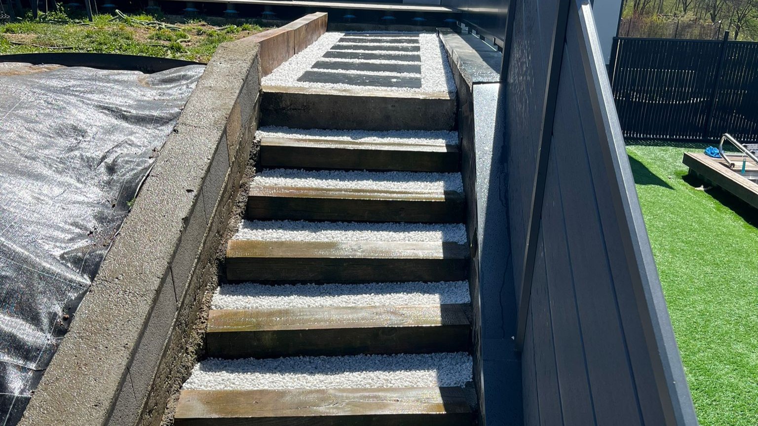 Conception d’escaliers en rondins, pierre ou gravier pour structurer les dénivelés avec naturel.