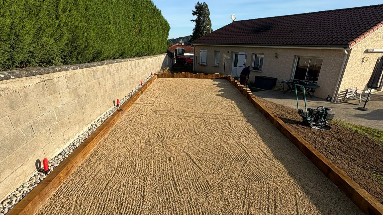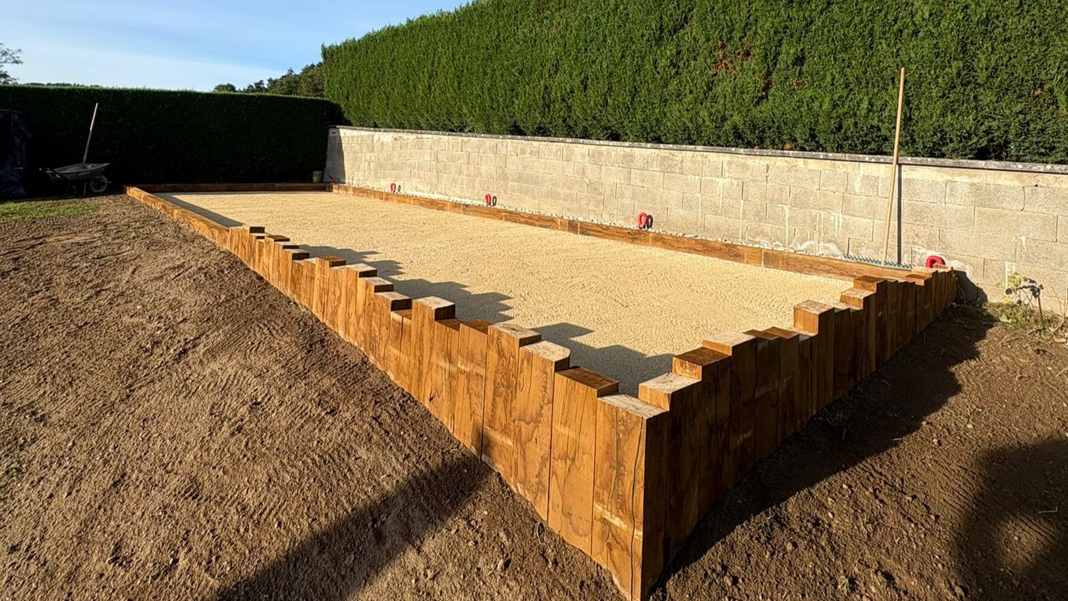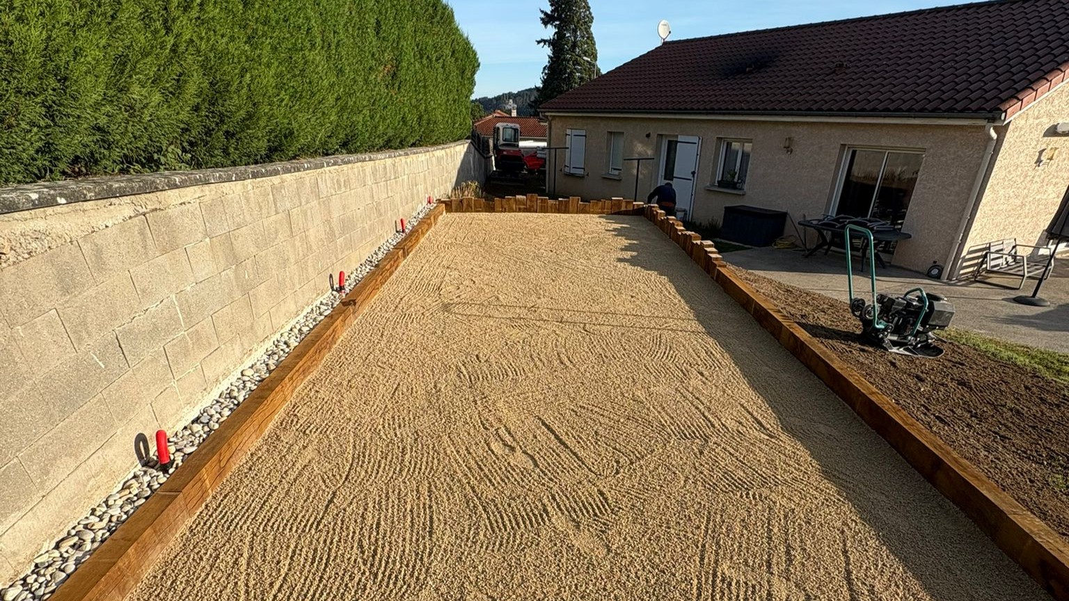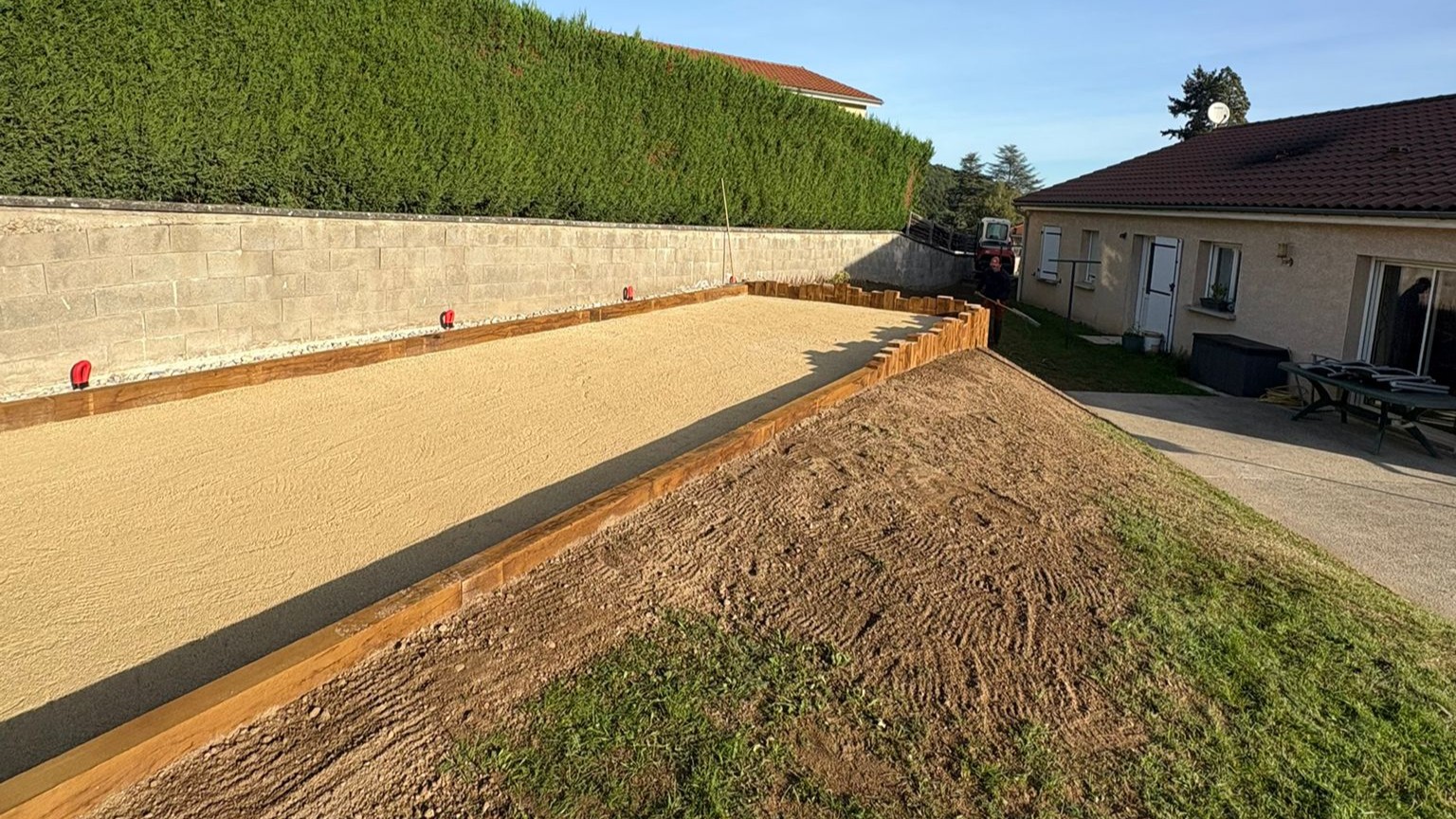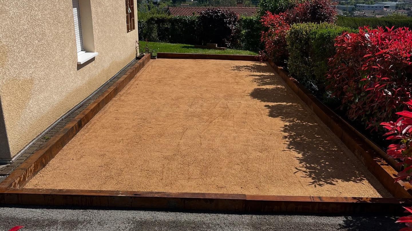 Aménagement complet de terrains de pétanque stables, drainants et parfaitement nivelés.
