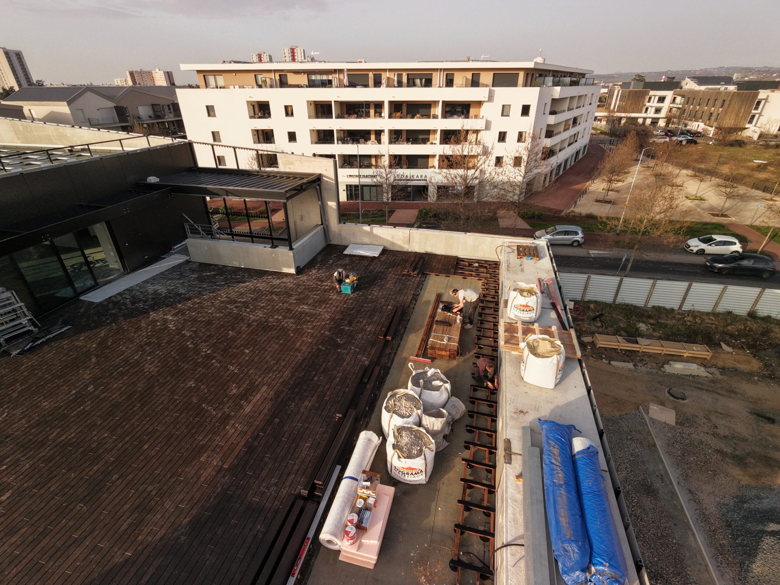 Pose de dalles sur plots pour des surfaces stables, modernes et faciles d’entretien (toits, terrasses…).